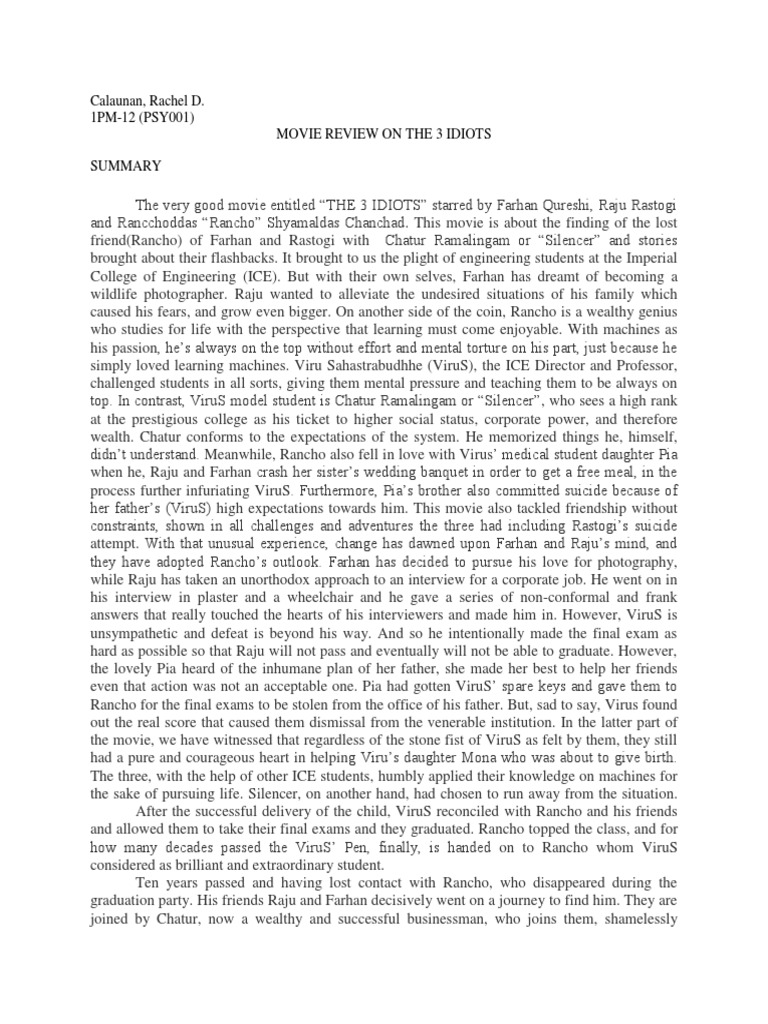 3 Idiots Summary : 3 idiots is an indian film circling the story of three best friends.