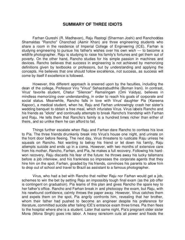 Summary Of 3 Idiots / In the tradition of ferris bueller's day off comes this refreshing comedy about a rebellious prankster with a crafty mind and a heart of gold.